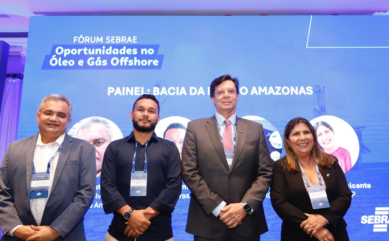 Painel da Bacia da Foz do Amazonas com Antônio Batista, diretor de Petróleo & Gás da Agência Desenvolvimento do Governo do Amapá; Cezar Gomes Carneiro, coordenador da Área de Exploração da Petrobras; Telmo Ghiorzi, presidente executivo da Associação Brasileira das Empresas de Bens e Serviços de Petróleo (Abespetro); Alcilene Cavalcante, diretora-superintendente do Sebrae Amapá, como moderadora